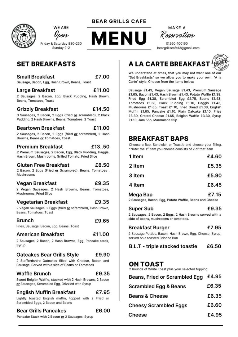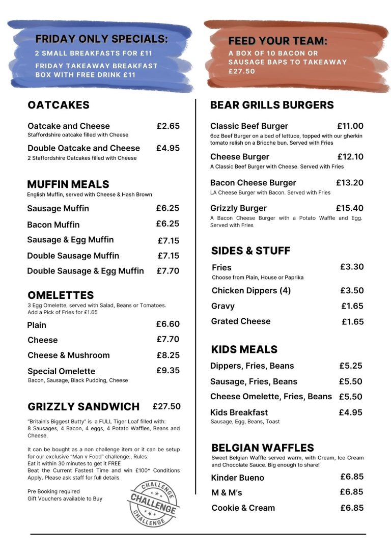 We offer possibly the largest breakfast menu in Cheshire! All of our set breakfasts are designed to offer all the treats you would hope to find on a breakfast. Choose from a range of classic Full English Breakfasts or try something a little different like our American Breakfast, our English Muffin Breakfast, our Staffordshire Oatcake Breakfast , our Breakfast Burger or Waffle Stack Brunch, or just simply Build Your Own Breakfast from our huge range of items!